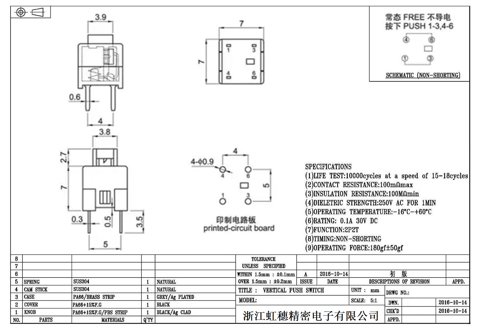 3. 絕緣阻抗: DC 250V ≥100mΩ