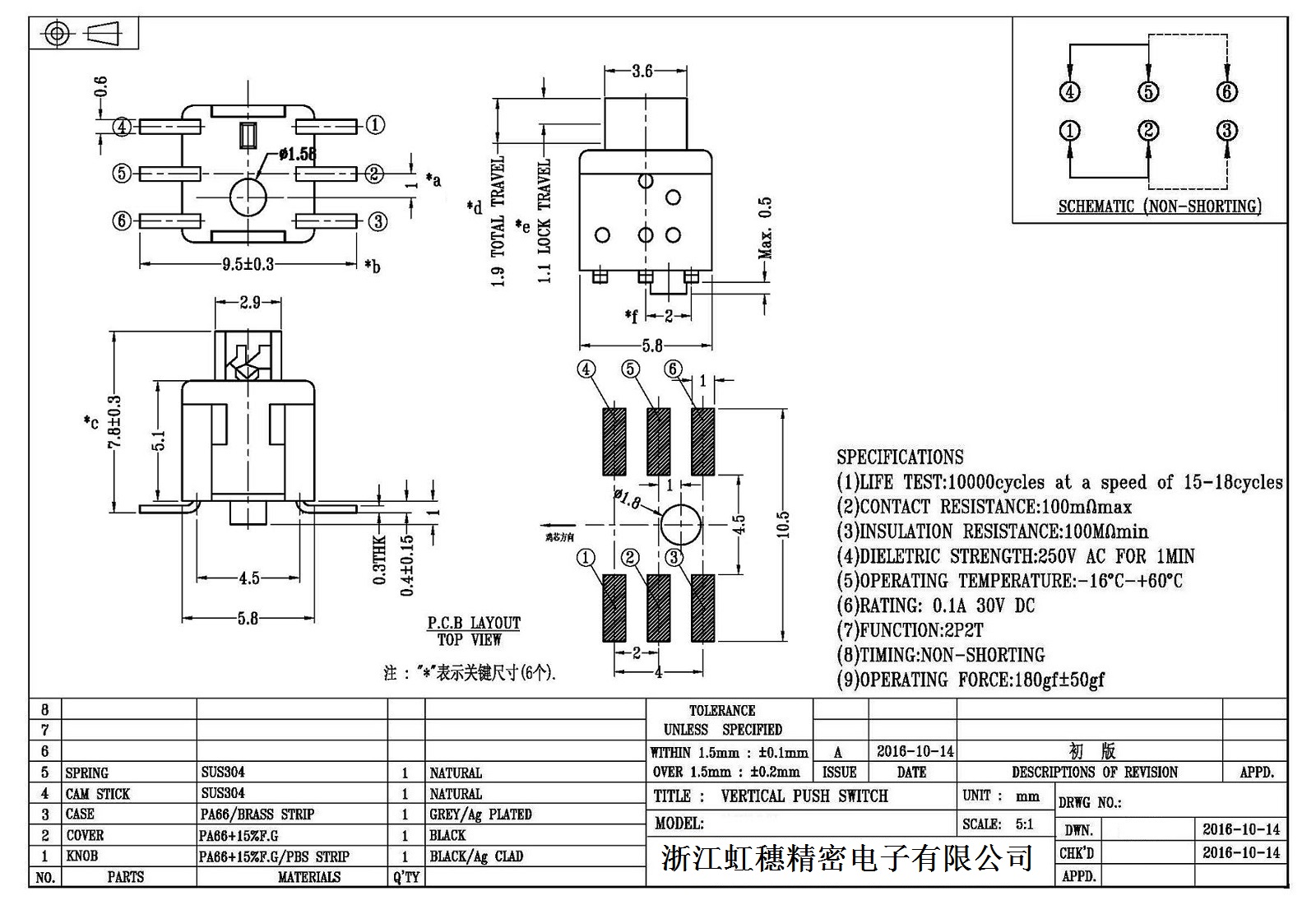 自鎖開關(guān)技術(shù)參數(shù):