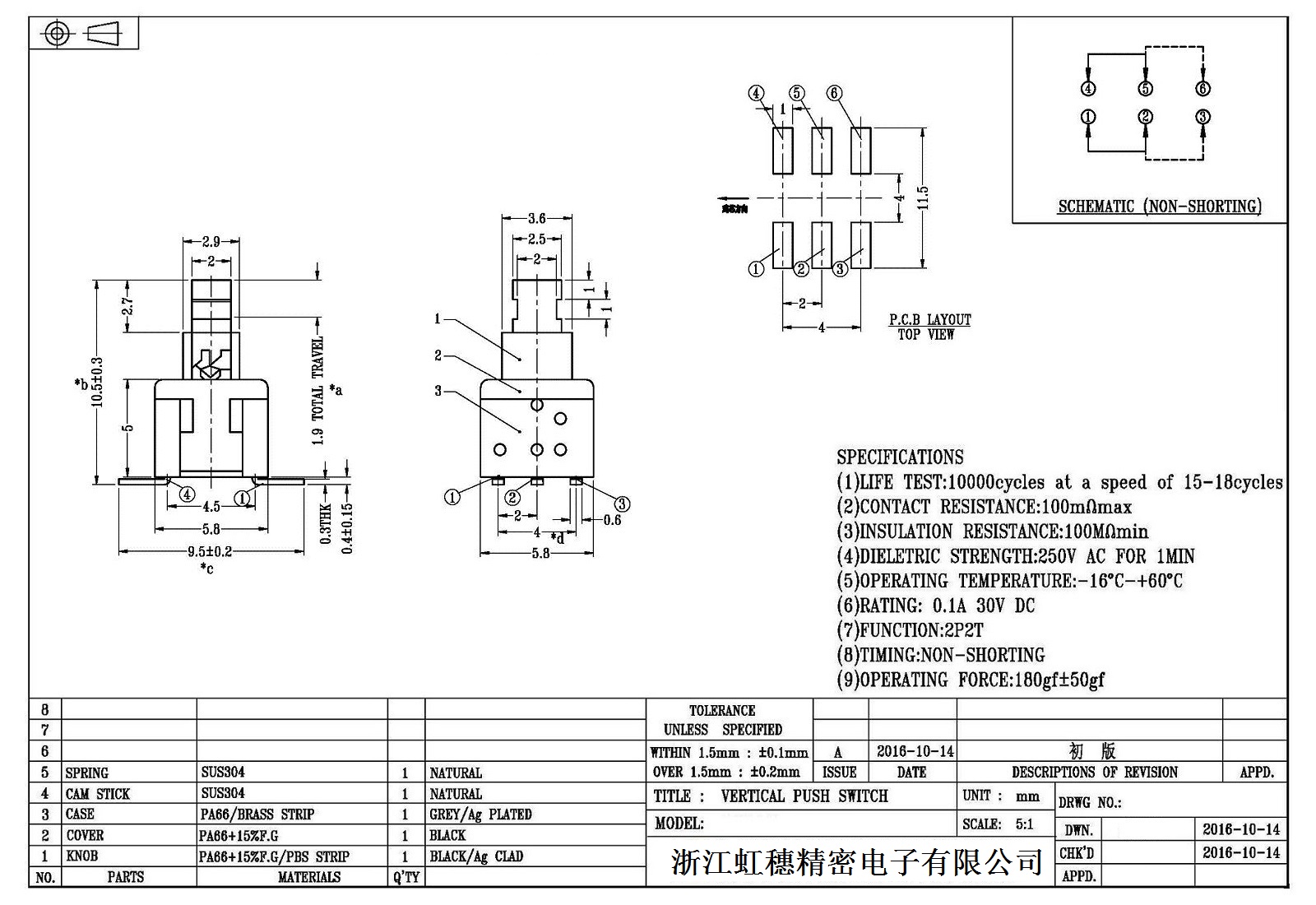 自鎖開關(guān)技術(shù)參數(shù):