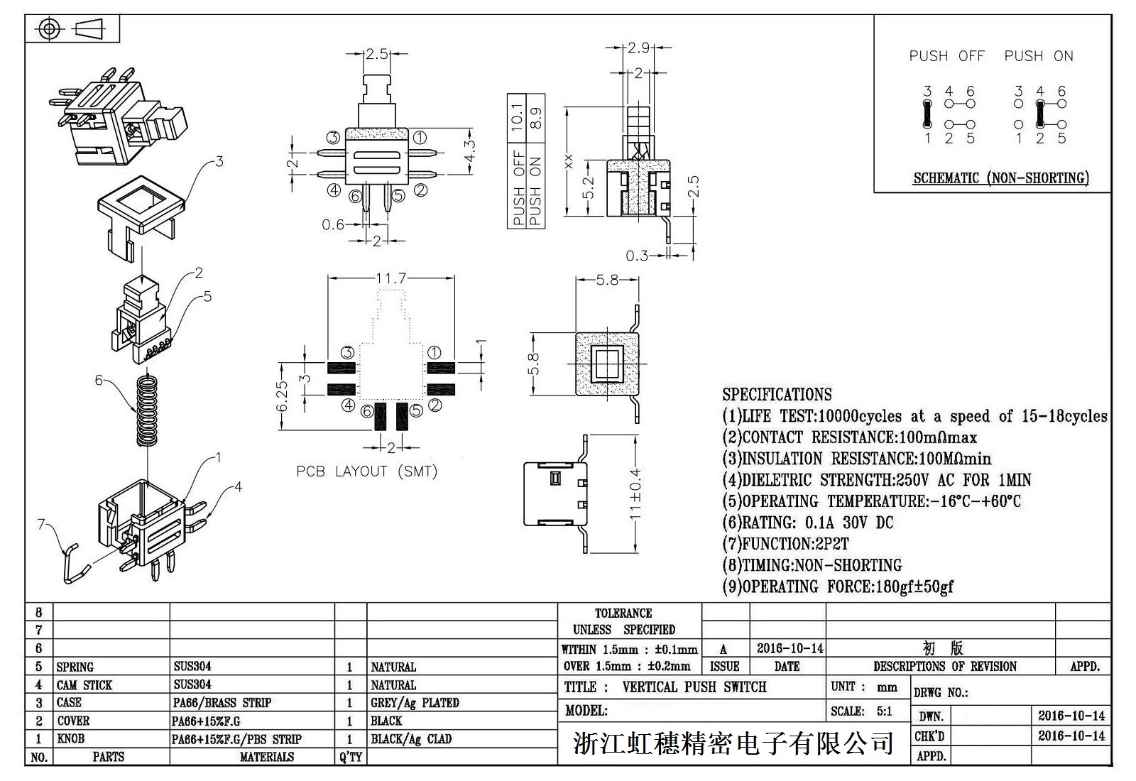自鎖開關(guān)技術(shù)參數(shù):