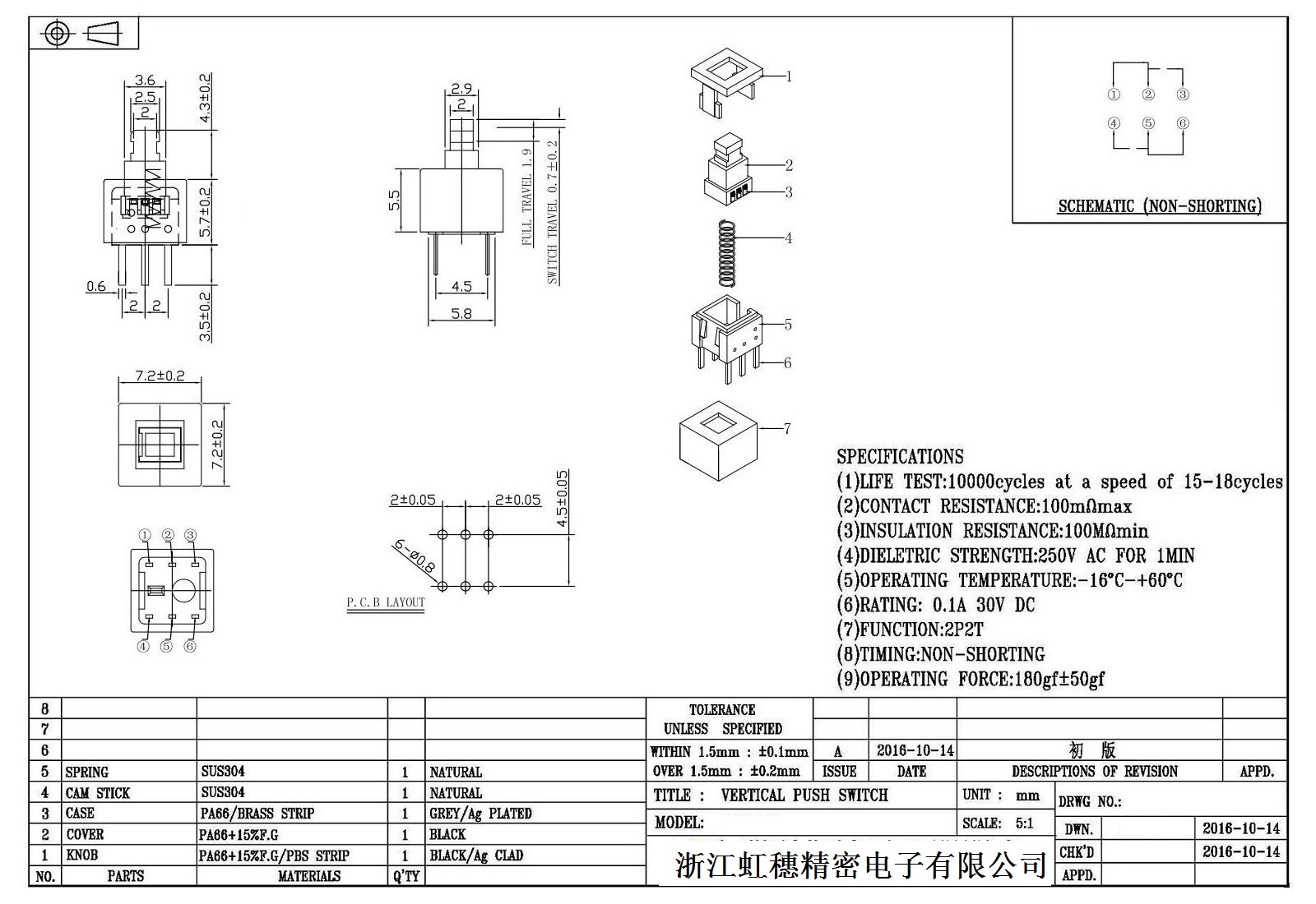 自鎖開(kāi)關(guān)技術(shù)參數(shù):
