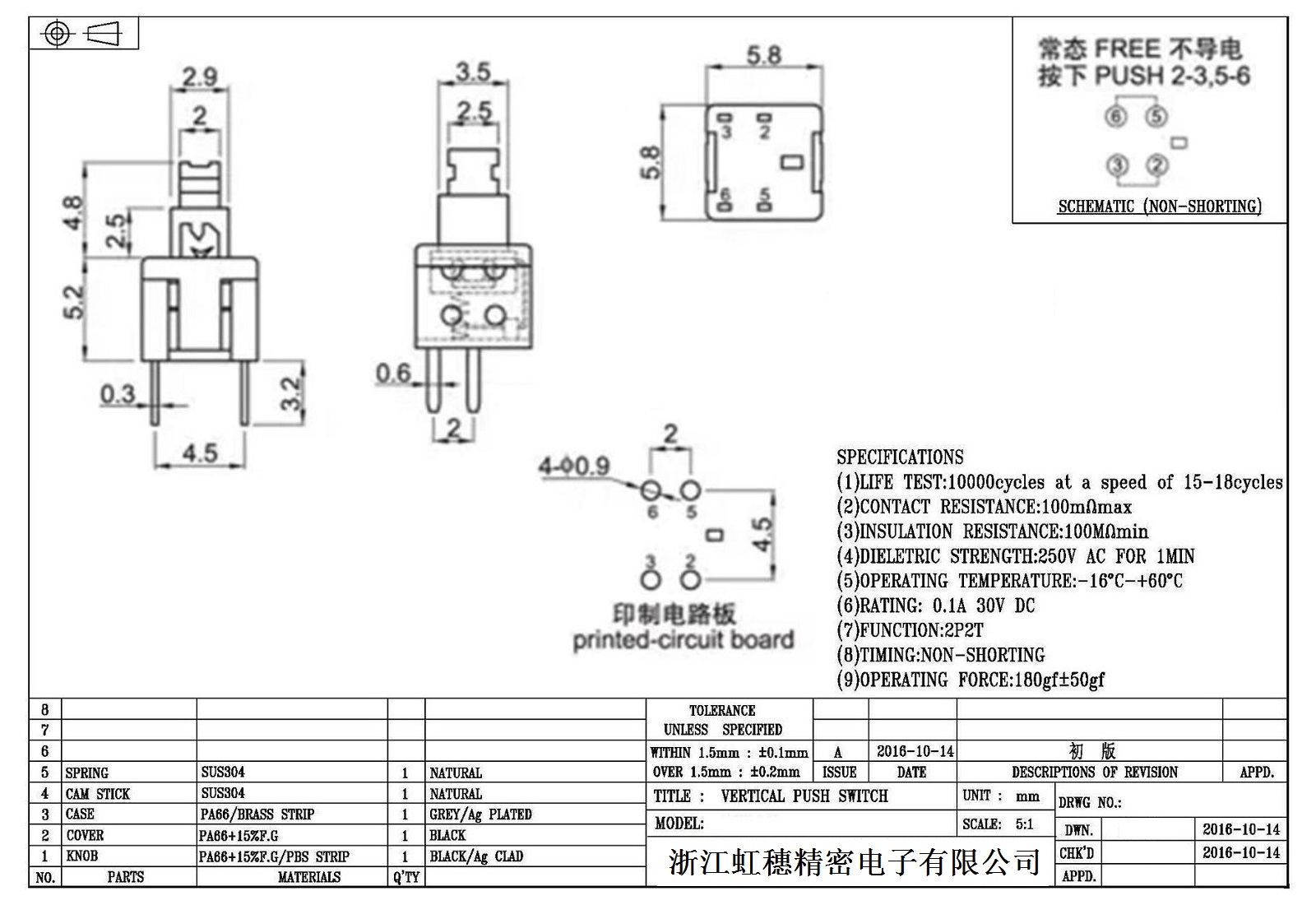 自鎖開關技術參數: