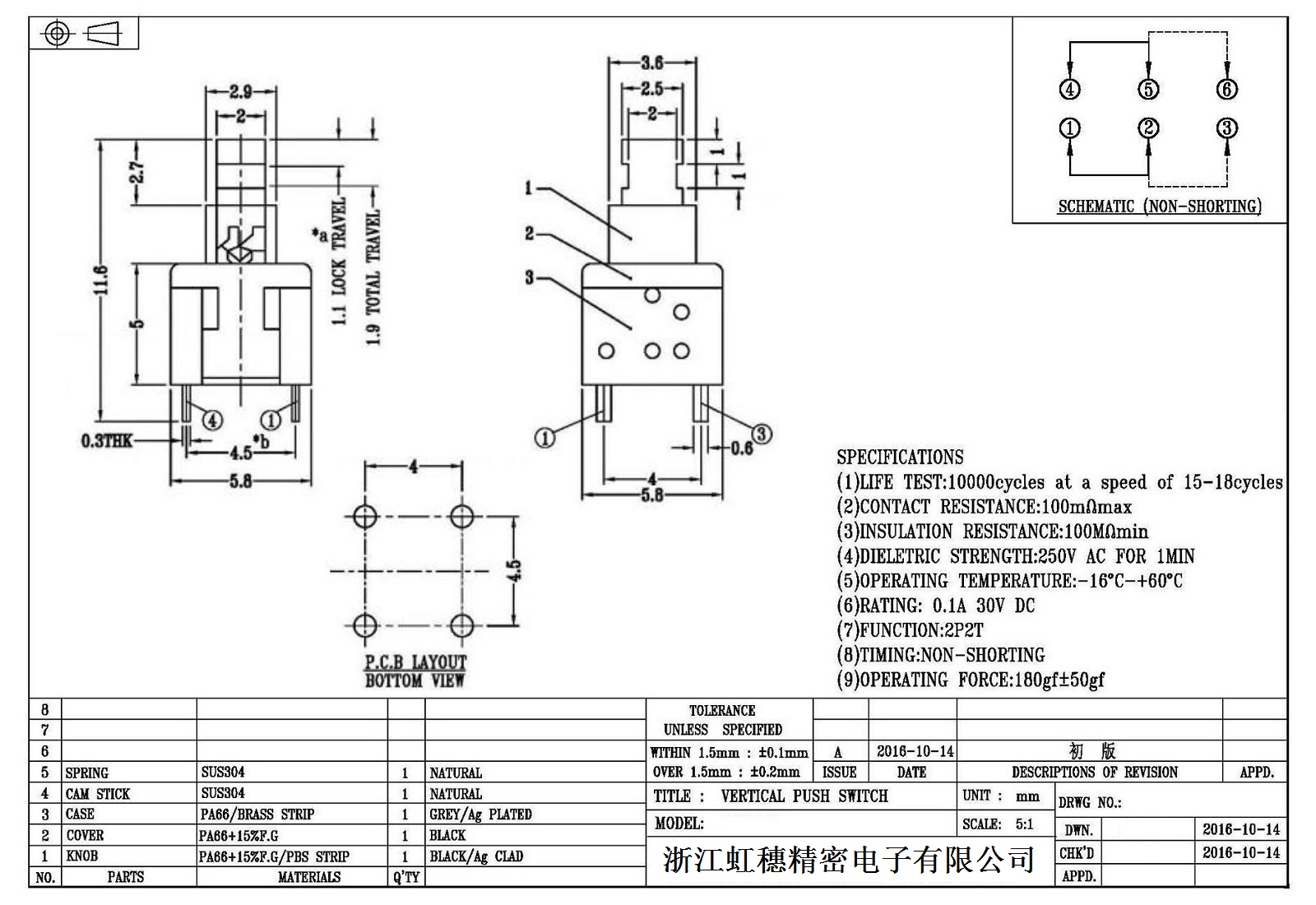 自鎖開關(guān)技術(shù)參數(shù):