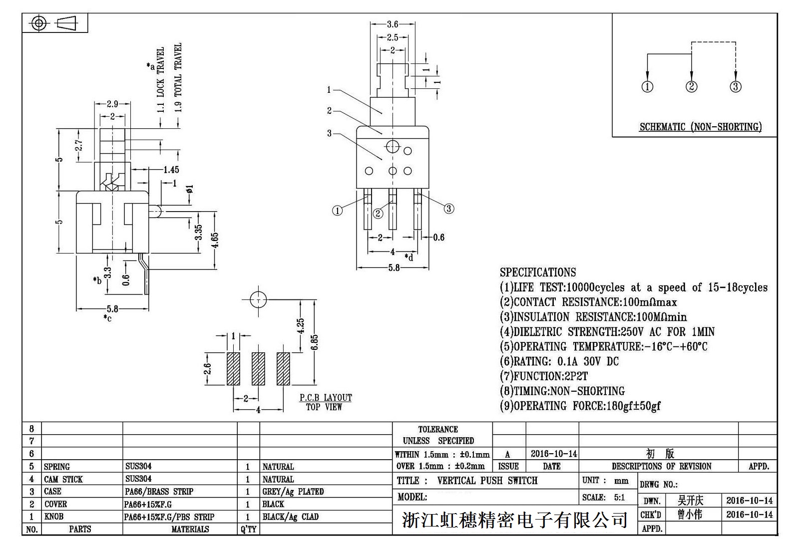 1. 額定負荷DC 30V  50V  0.3A  0.5A