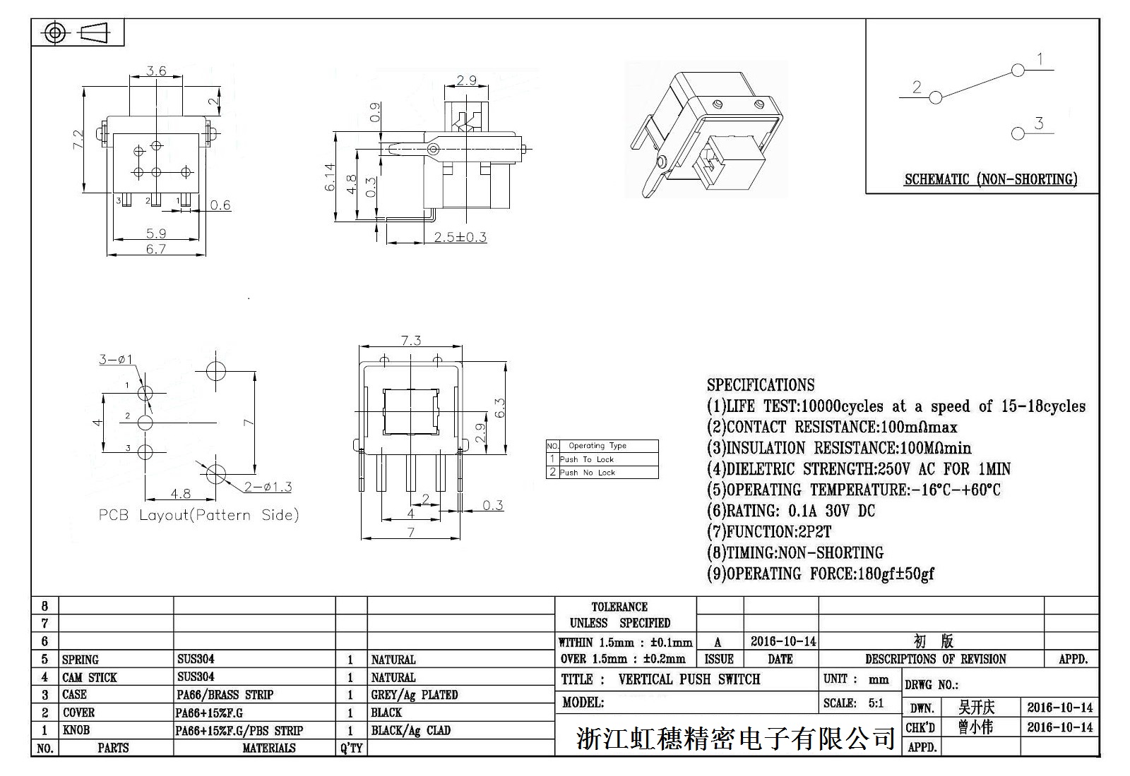 自鎖開關技術參數: