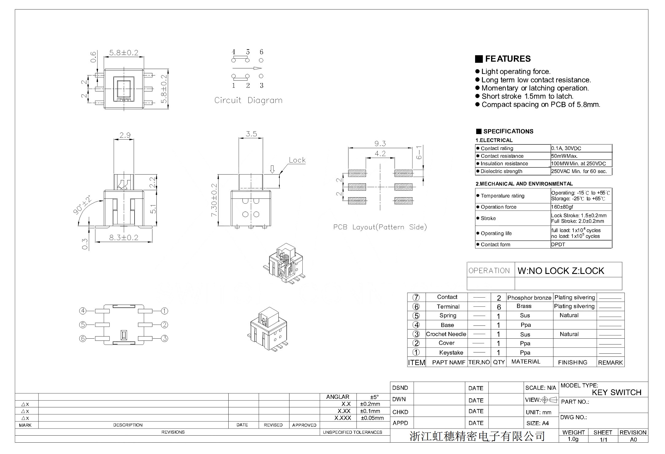 8. Operating force: 240gf ±80gf