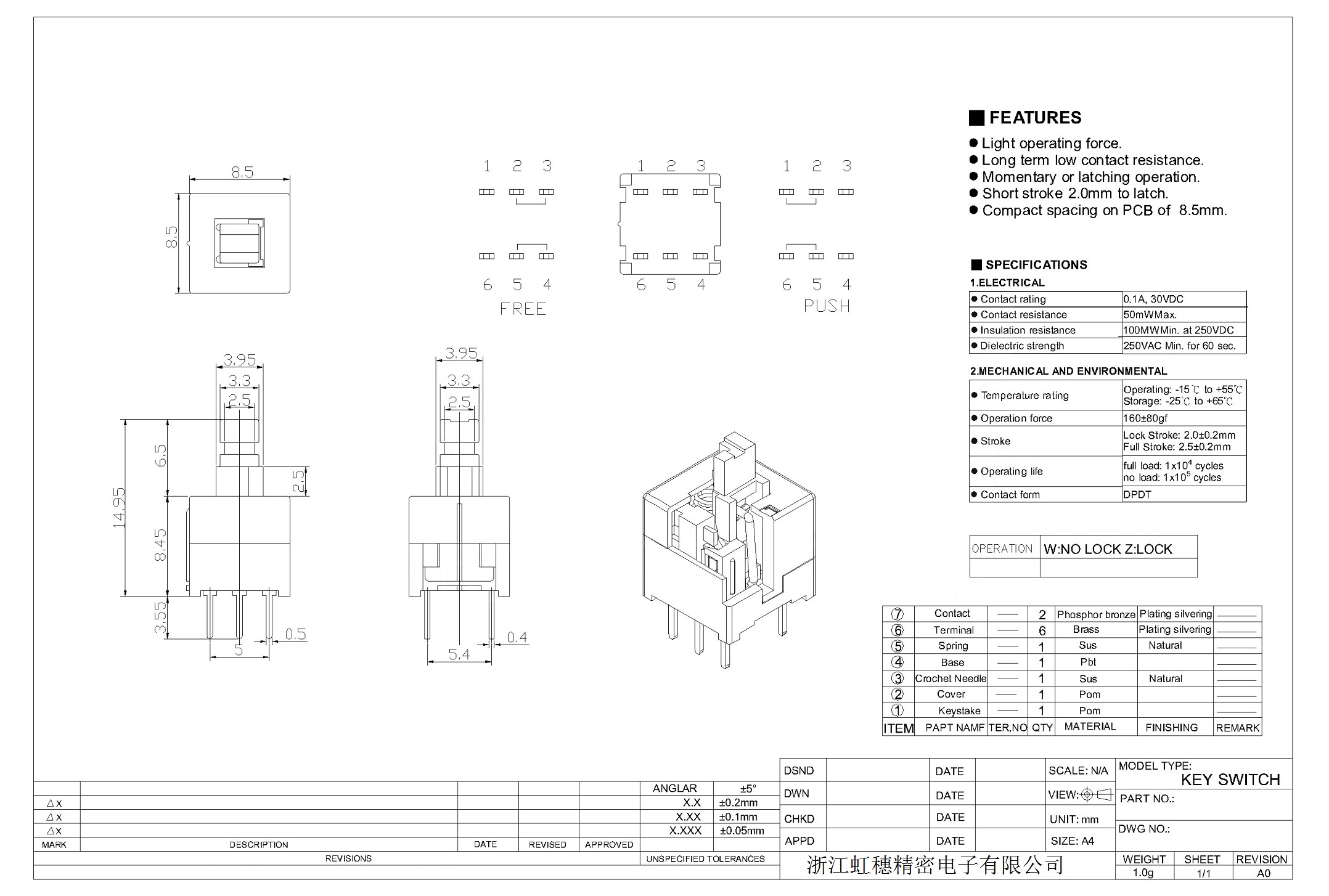 1. 額定負荷: DC 30V  50V  0.3A  0.5A