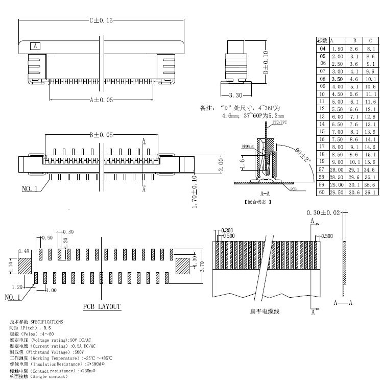 1.額定電壓、電流:50V DC/AC 2.接觸電阻:≤30mΩ