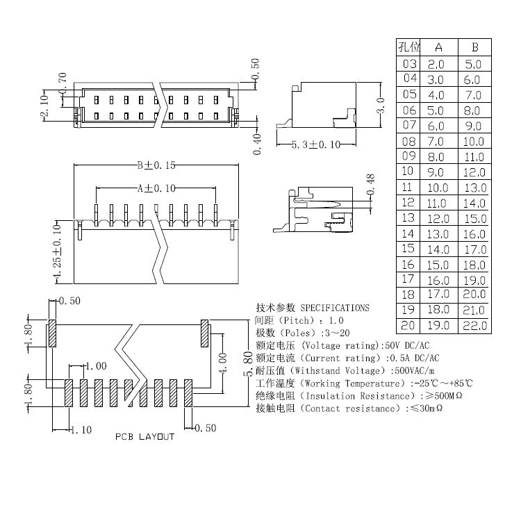 1.額定電壓、電流:50V DC/AC 2.接觸電阻:≤30mΩ
