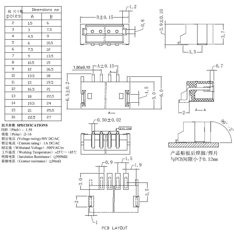 1.額定電壓、電流:50V DC/AC 2.接觸電阻:≤30mΩ