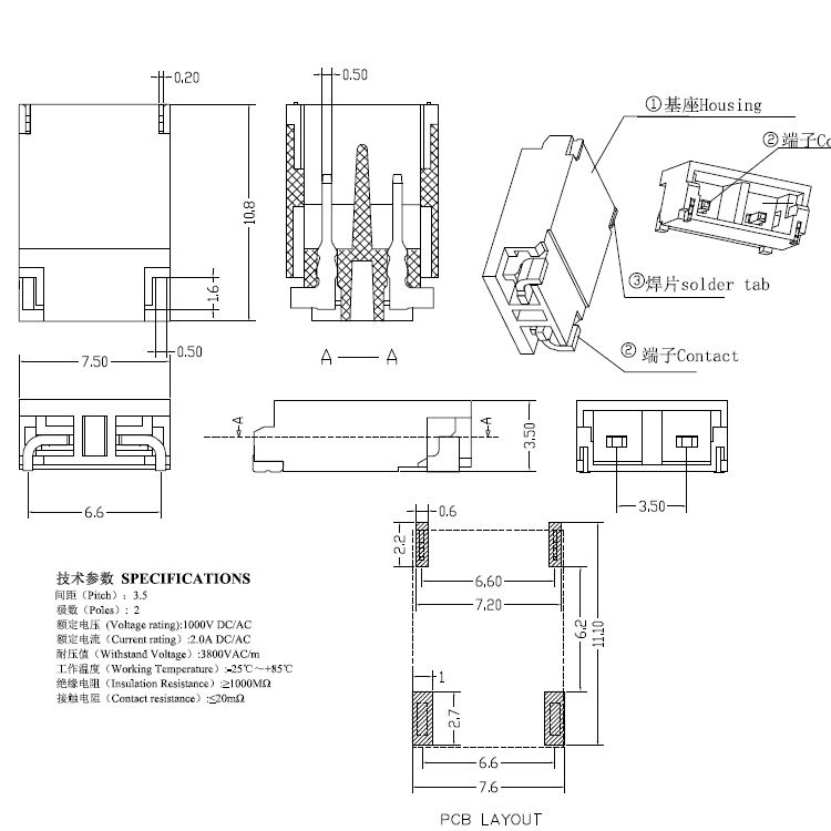 1.額定電壓、電流:50V DC/AC 2.接觸電阻:≤30mΩ