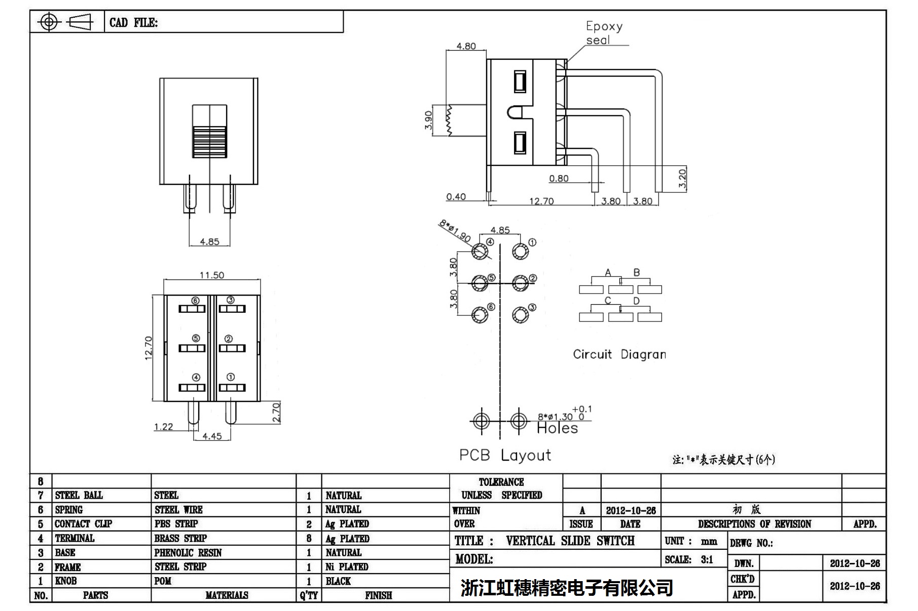 大電流撥動開關(guān)技術(shù)參數(shù):