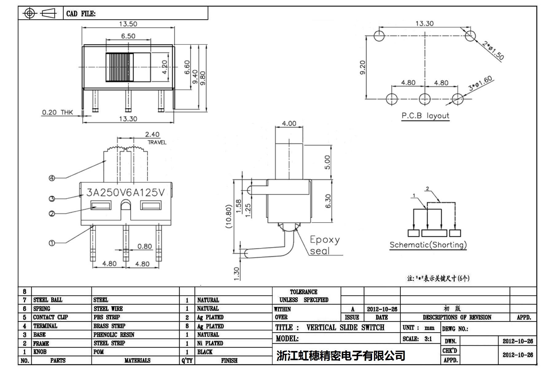 大電流撥動(dòng)開關(guān)技術(shù)參數(shù):