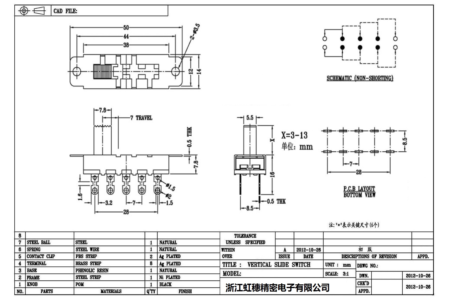 Technical parameters of high current slide switch: