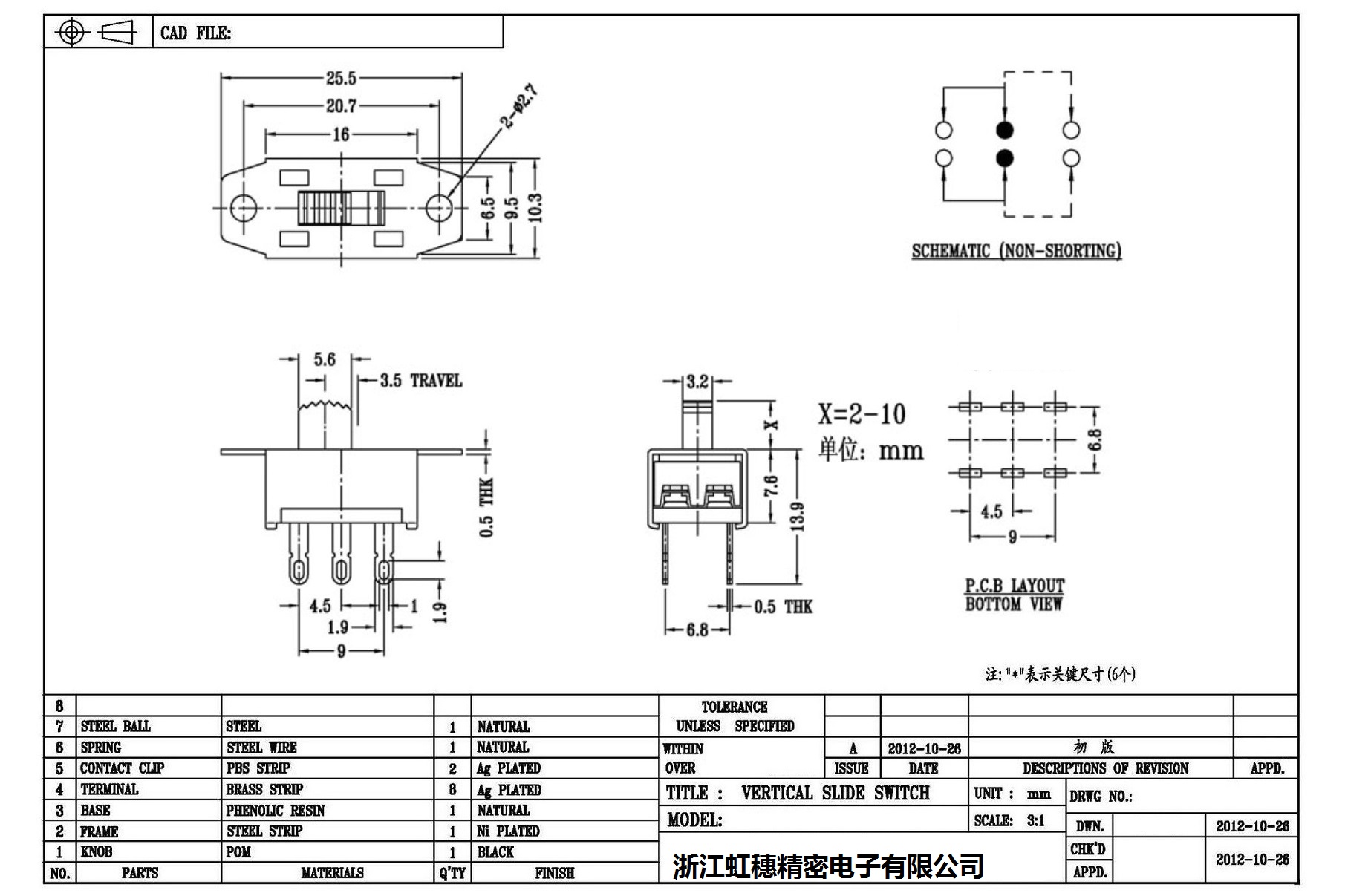 Technical parameters of high current slide switch: