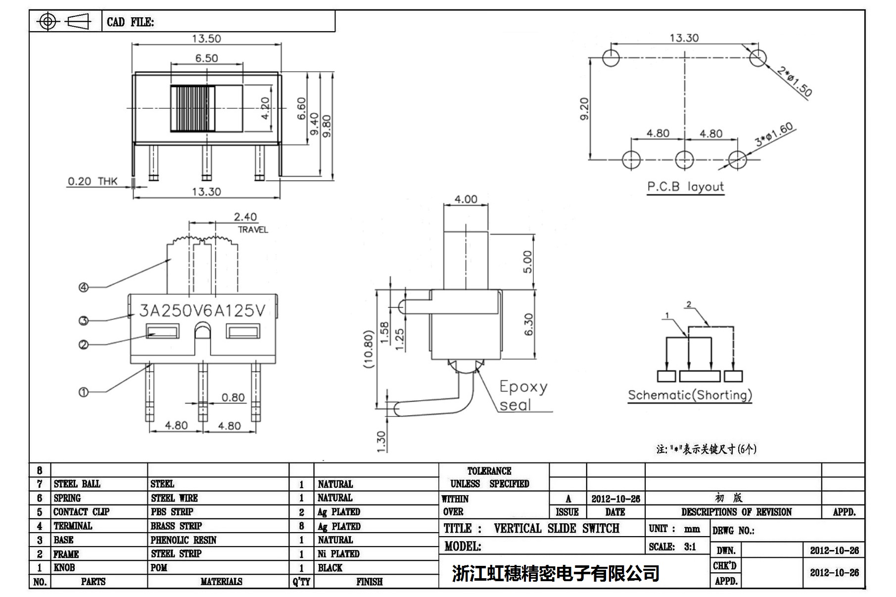 大功率撥動開關(guān)技術(shù)指標