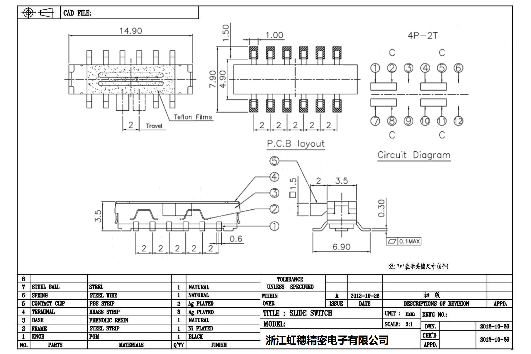 Technical parameters of mini slide switch: