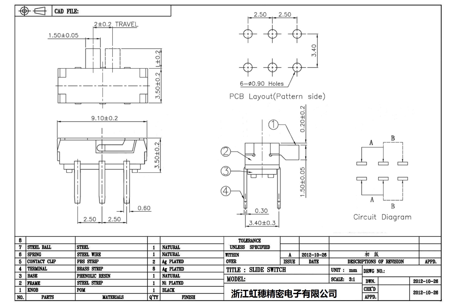 Technical parameters of mini slide switch: