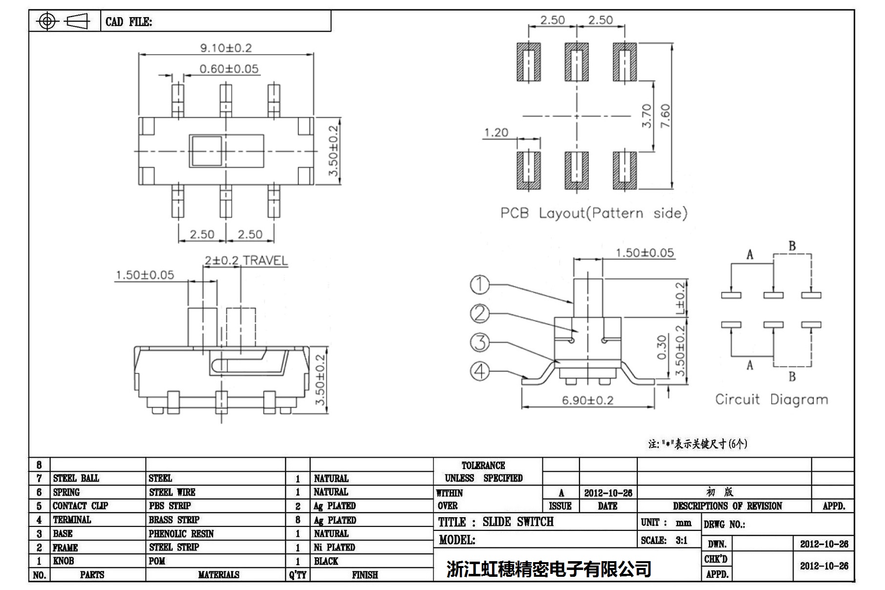 1. 額定負荷: DC 12V 30V 0.3A 0.5A 2. 接觸阻抗: ≤50mΩ