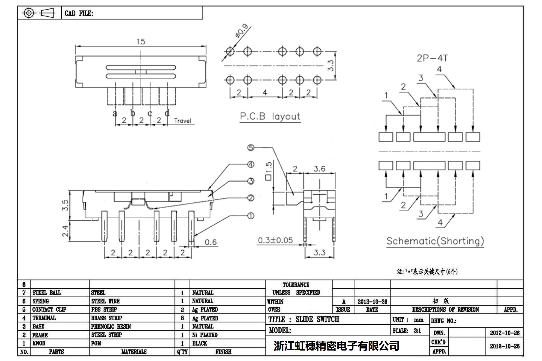 Minislide switch technical indicators / micro slide switch technical indicators