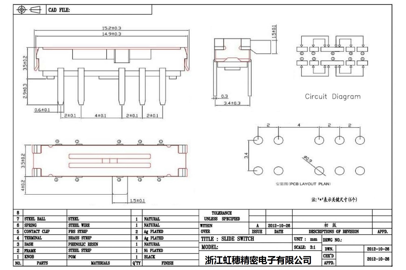 Minislide switch technical indicators / micro slide switch technical indicators