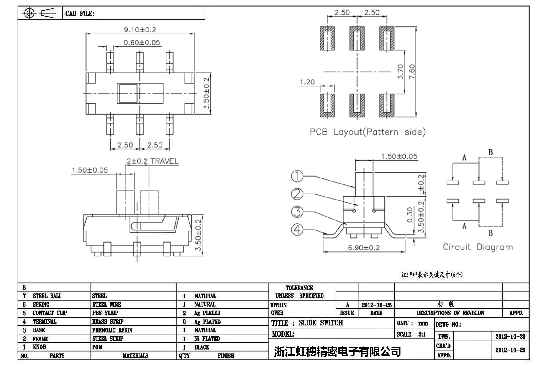 Minislide switch technical indicators / micro slide switch technical indicators