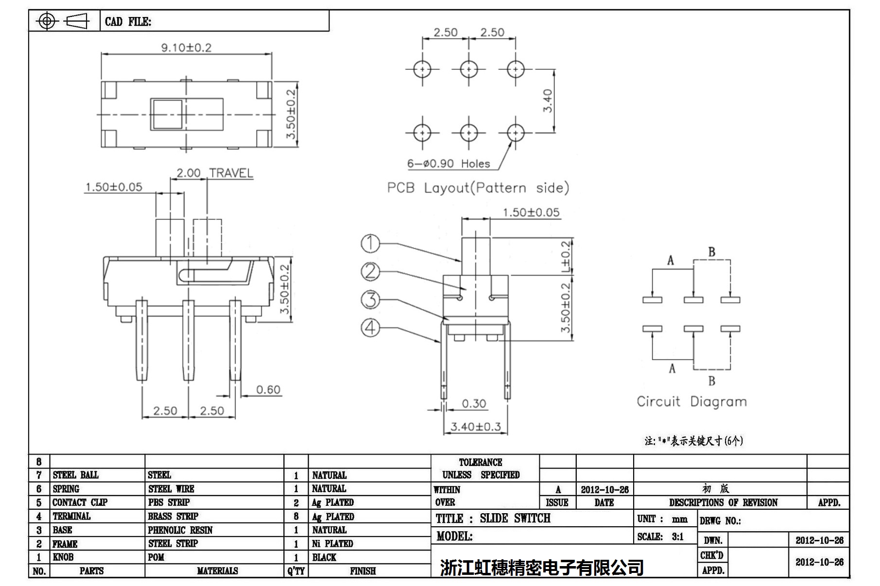 Minislide switch technical indicators / micro slide switch technical indicators