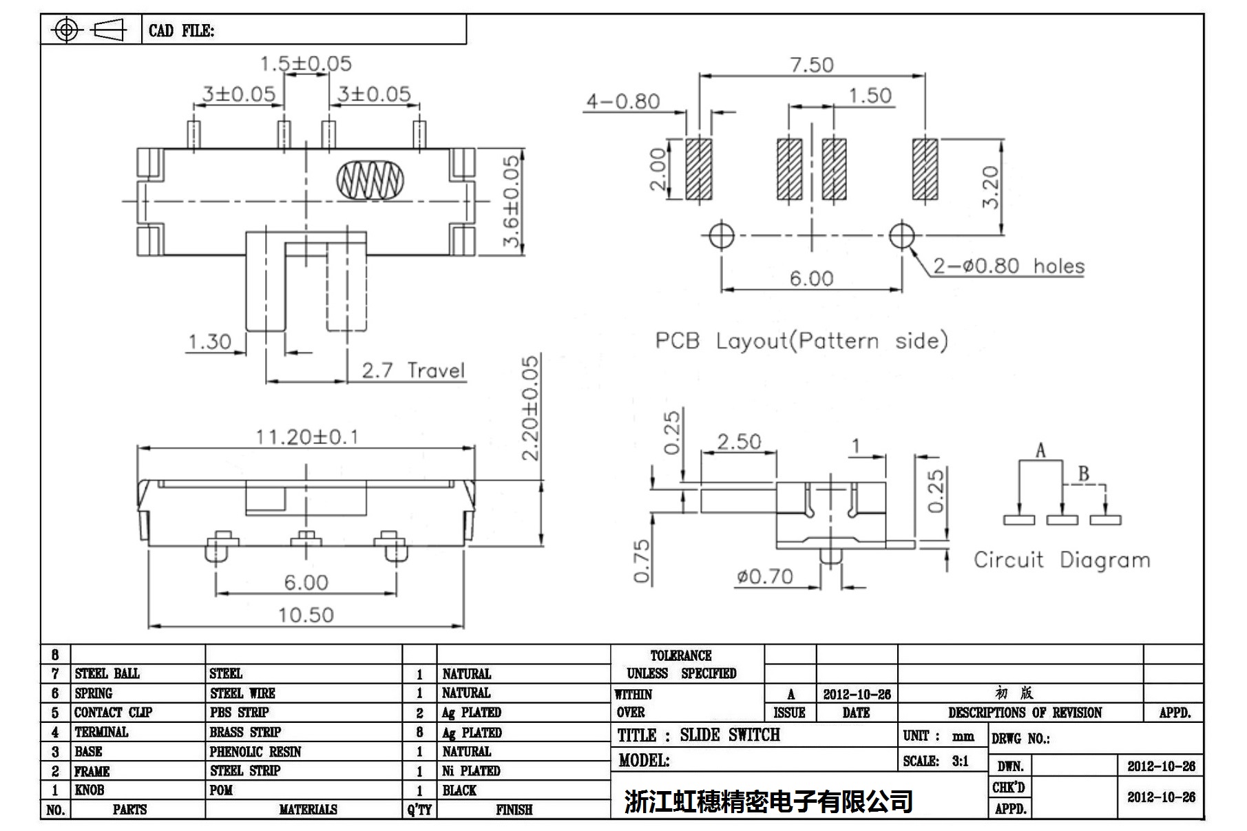 Minislide switch technical indicators / micro slide switch technical indicators