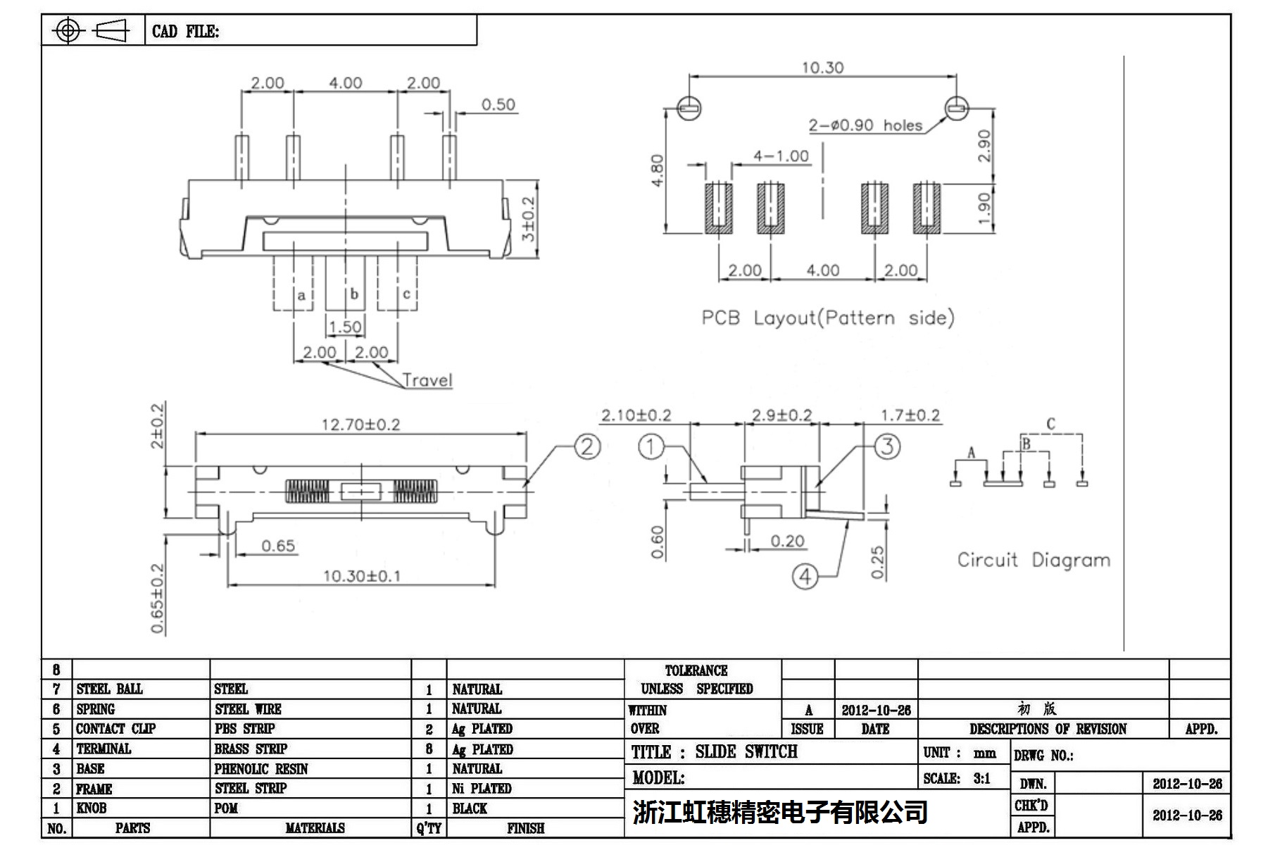 Minislide switch technical indicators / micro slide switch technical indicators