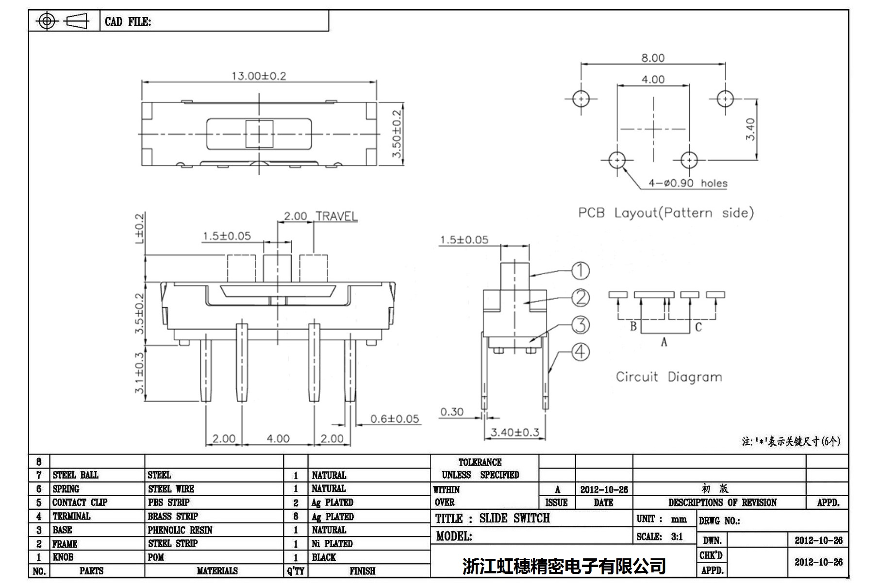Minislide switch technical indicators / micro slide switch technical indicators
