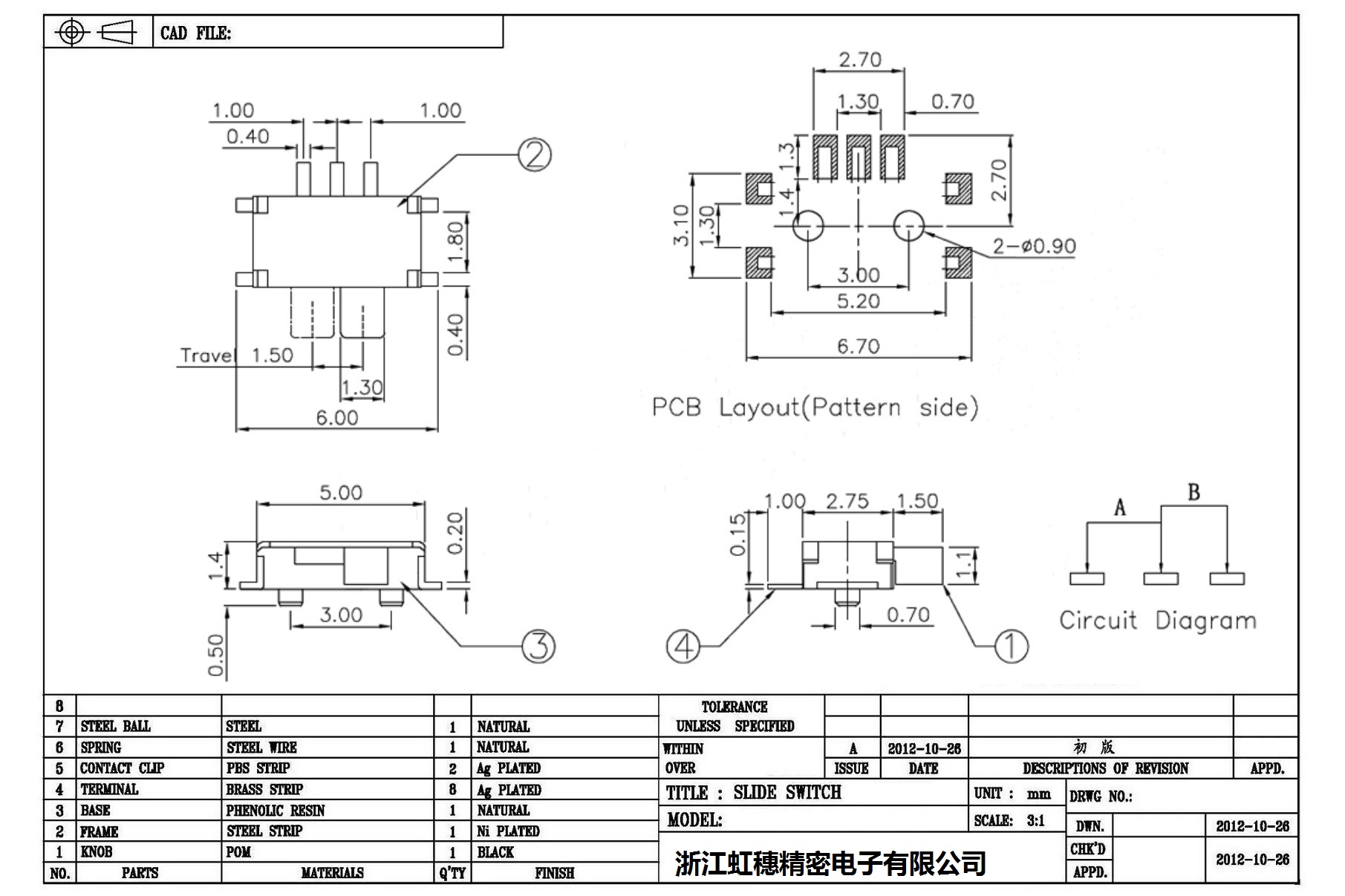 迷你型撥動開關(guān)技術(shù)指標