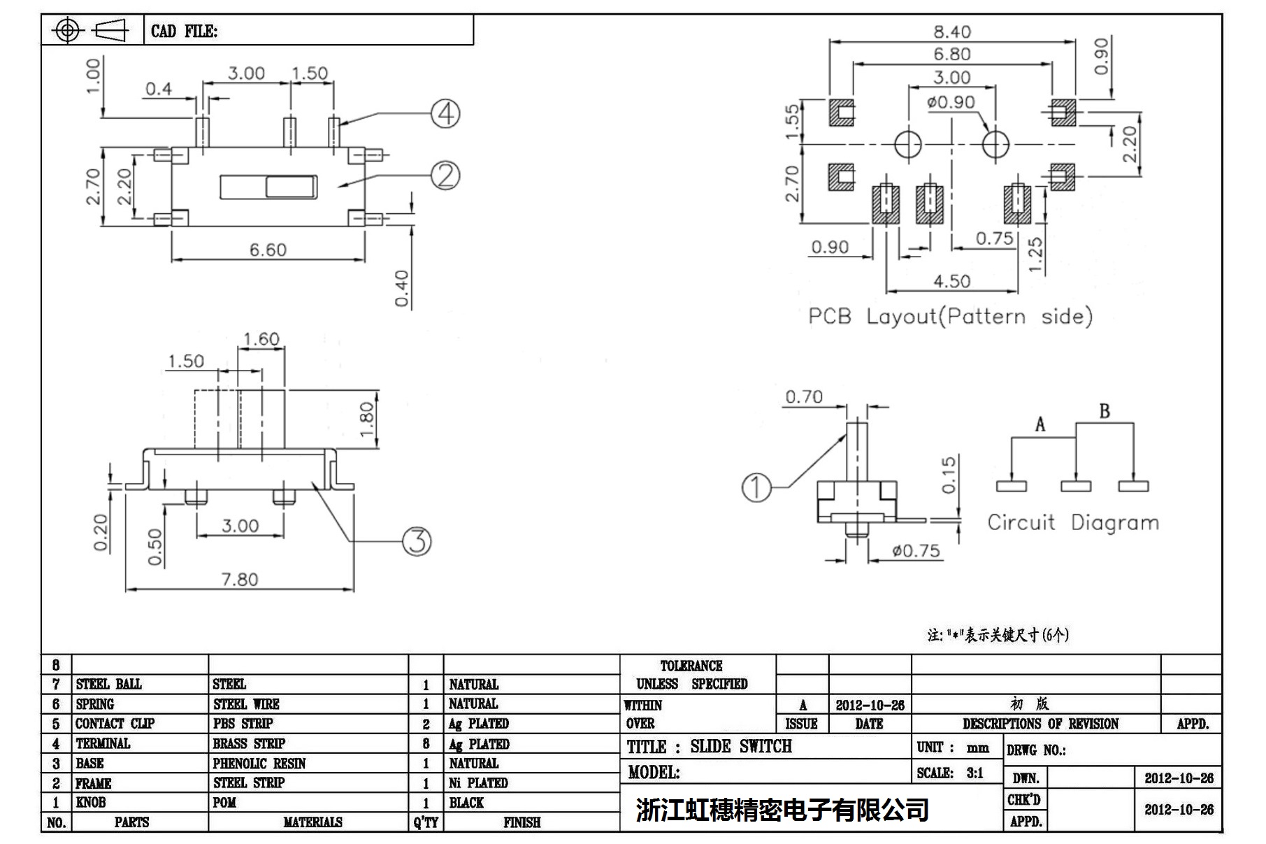 Minislide switch technical indicators / micro slide switch technical indicators