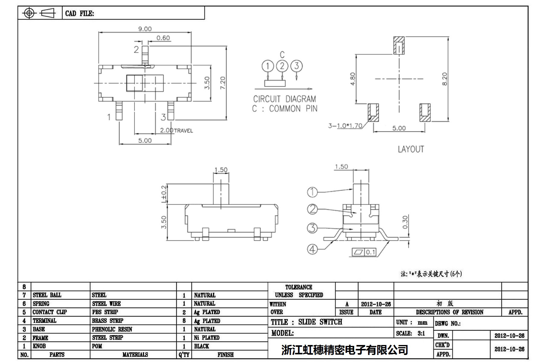 Minislide switch technical indicators / micro slide switch technical indicators