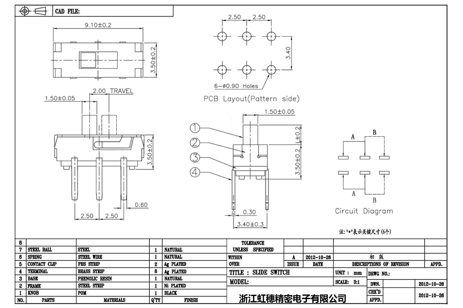 Minislide switch technical indicators / micro slide switch technical indicators