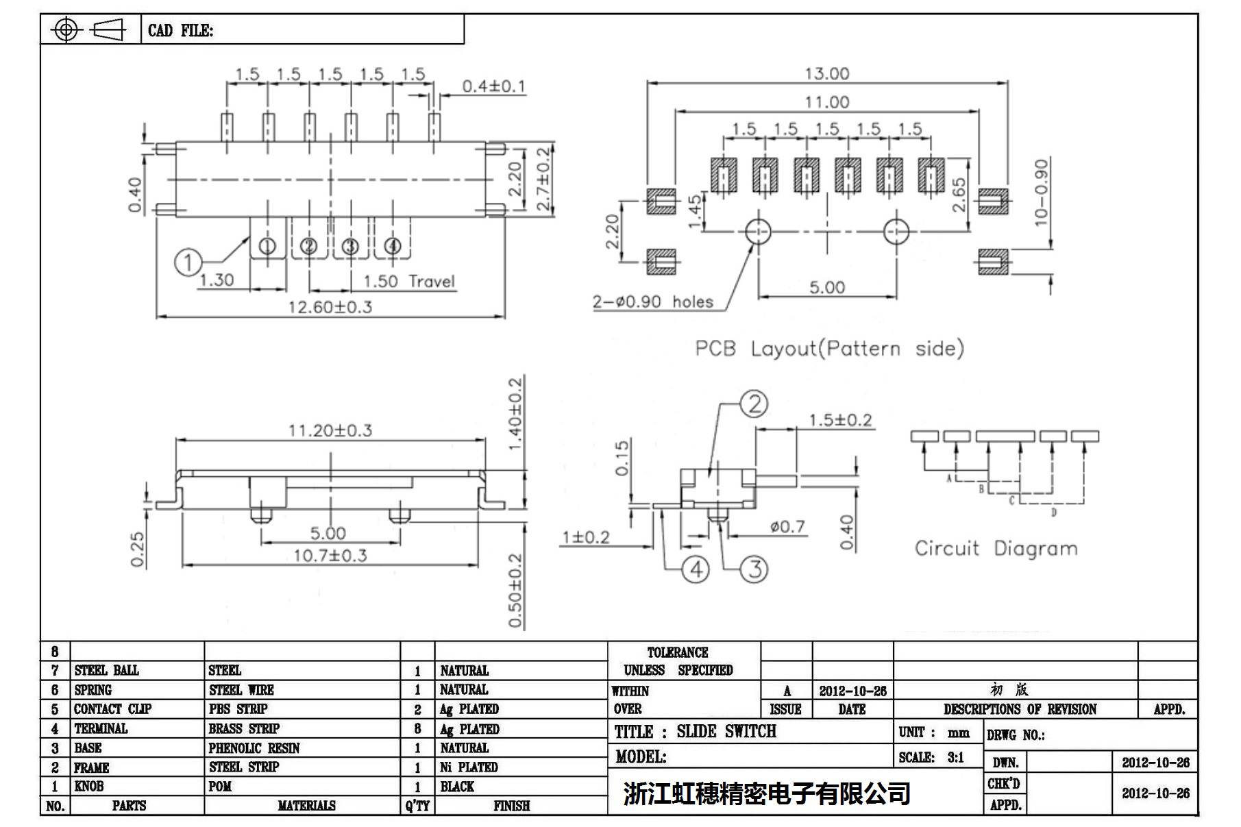 Minislide switch technical indicators / micro slide switch technical indicators