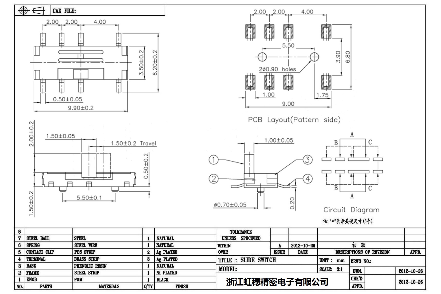 Minislide switch technical indicators / micro slide switch technical indicators