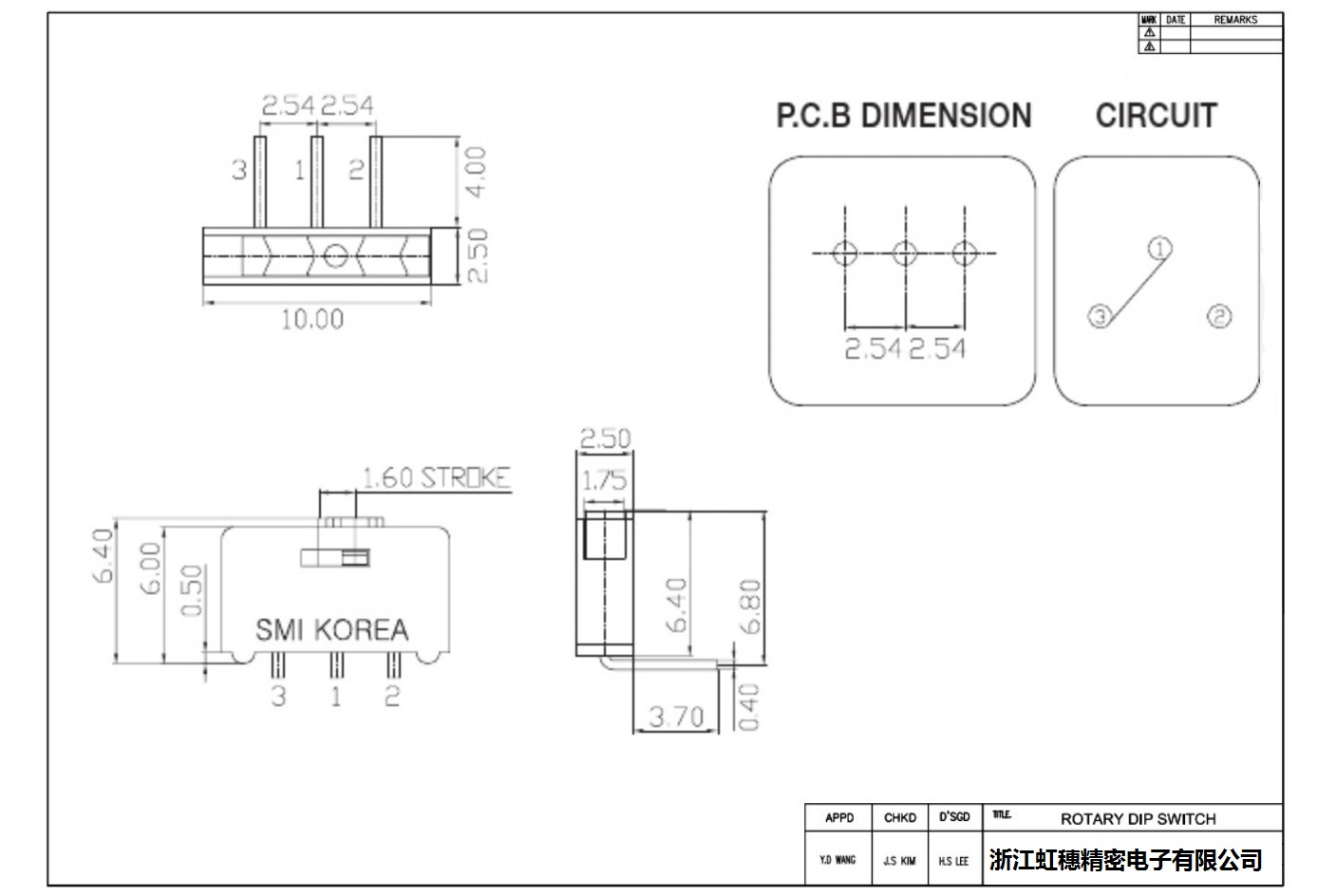 迷你型滑動(dòng)開(kāi)關(guān)技術(shù)指標(biāo)
