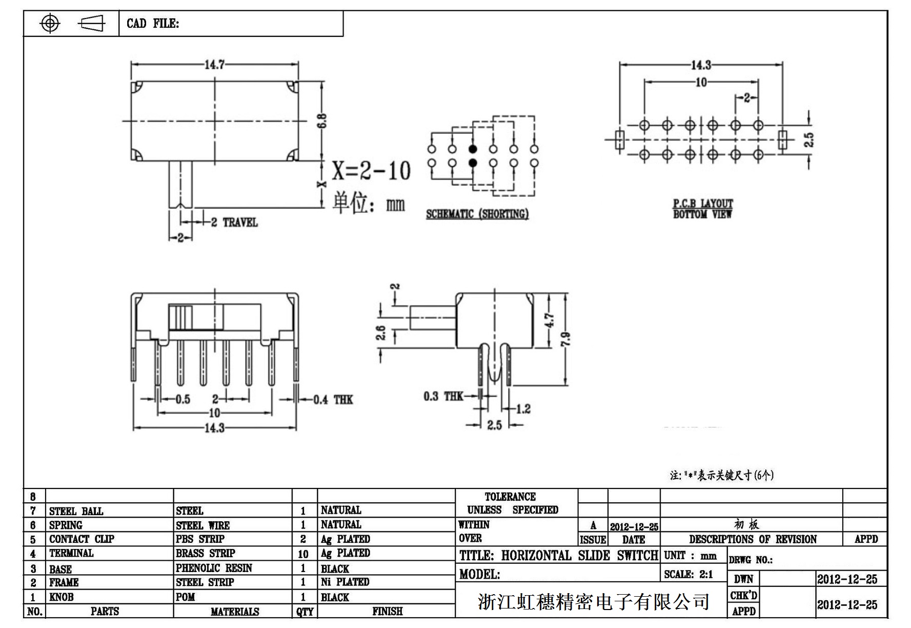 Horizontal toggle switch sidedial/horizontal slide switch technical indicators