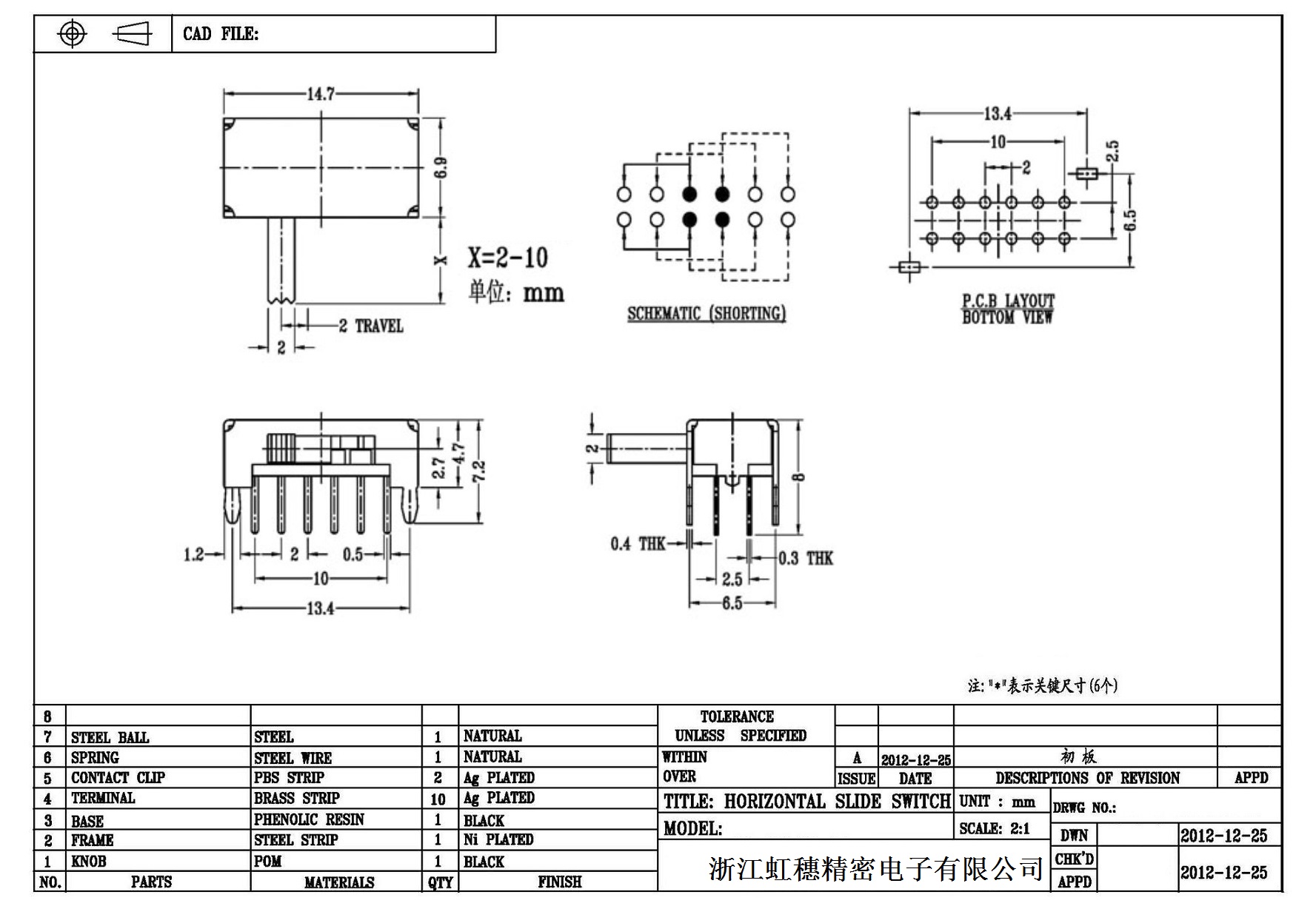 Horizontal toggle switch sidedial/horizontal slide switch technical indicators