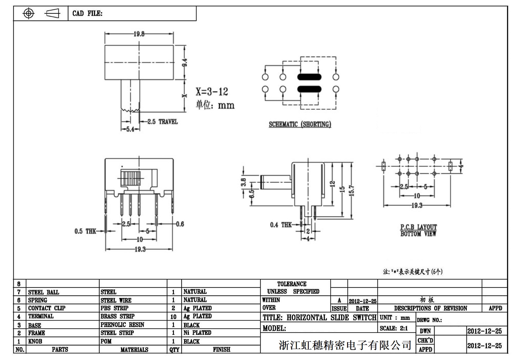 Horizontal toggle switch sidedial/horizontal slide switch technical indicators