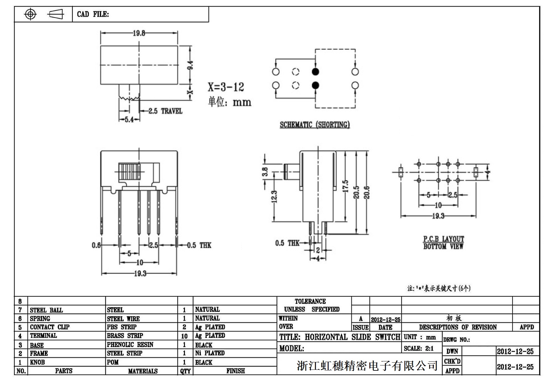 Horizontal toggle switch sidedial/horizontal slide switch technical indicators