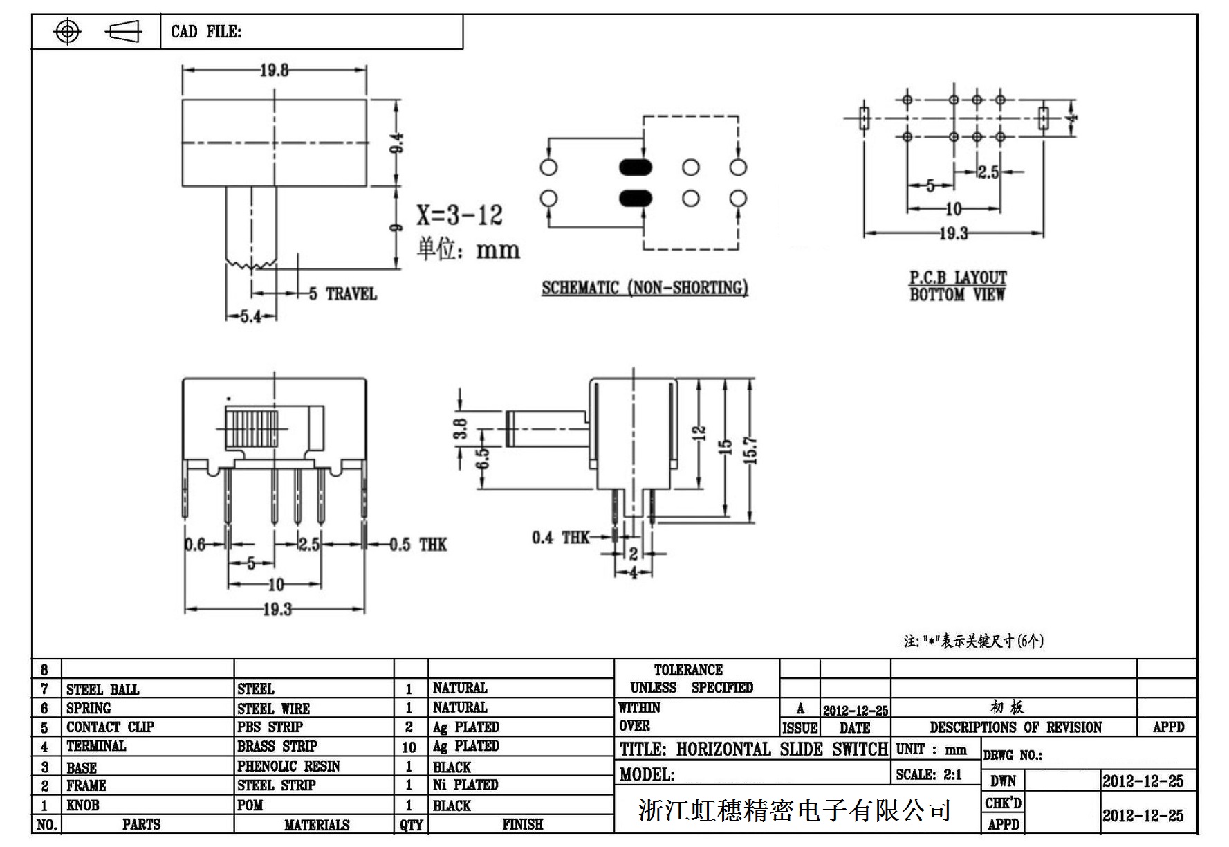 Horizontal toggle switch sidedial/horizontal slide switch technical indicators