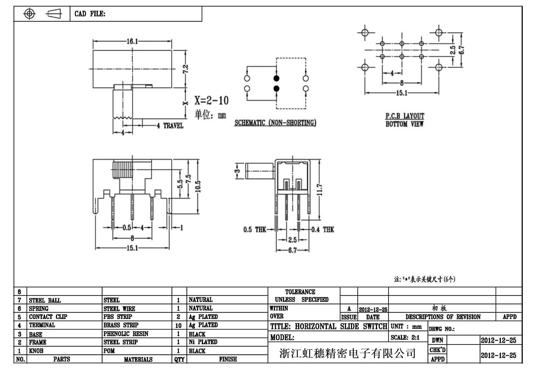 Horizontal toggle switch sidedial/horizontal slide switch technical indicators