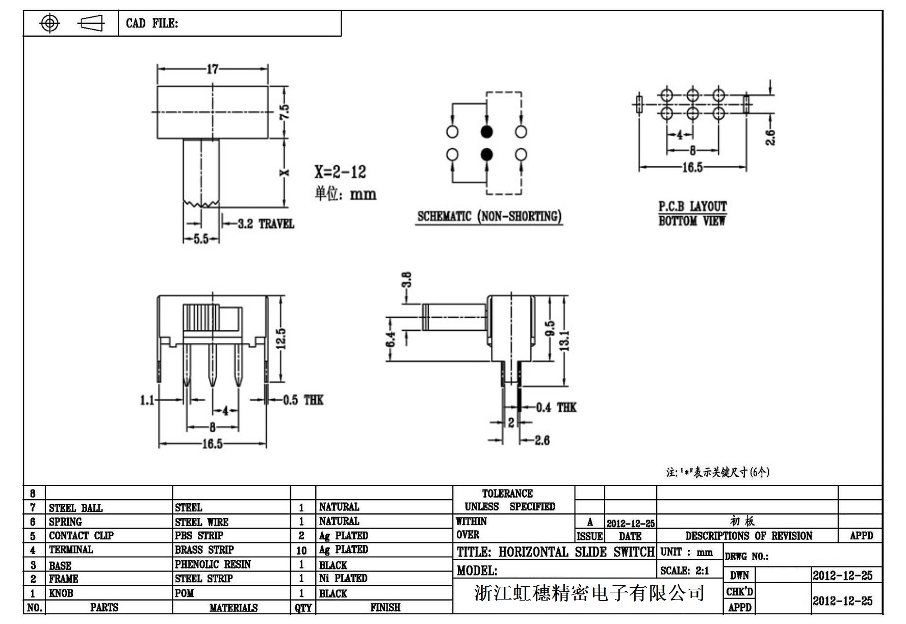 Horizontal toggle switch sidedial/horizontal slide switch technical indicators
