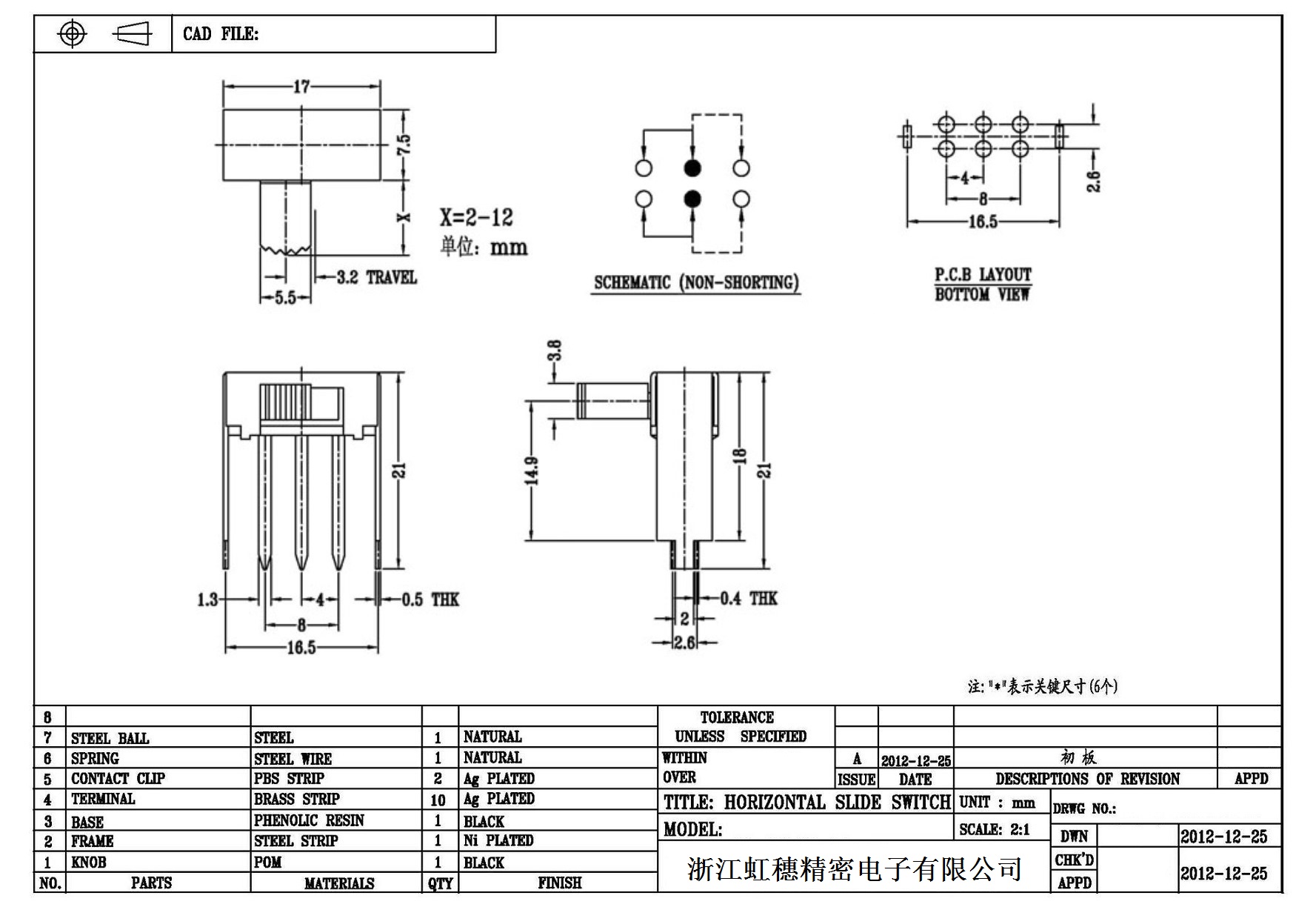 Horizontal toggle switch sidedial/horizontal slide switch technical indicators