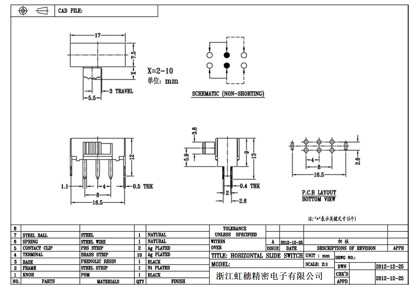 Horizontal toggle switch sidedial/horizontal slide switch technical indicators