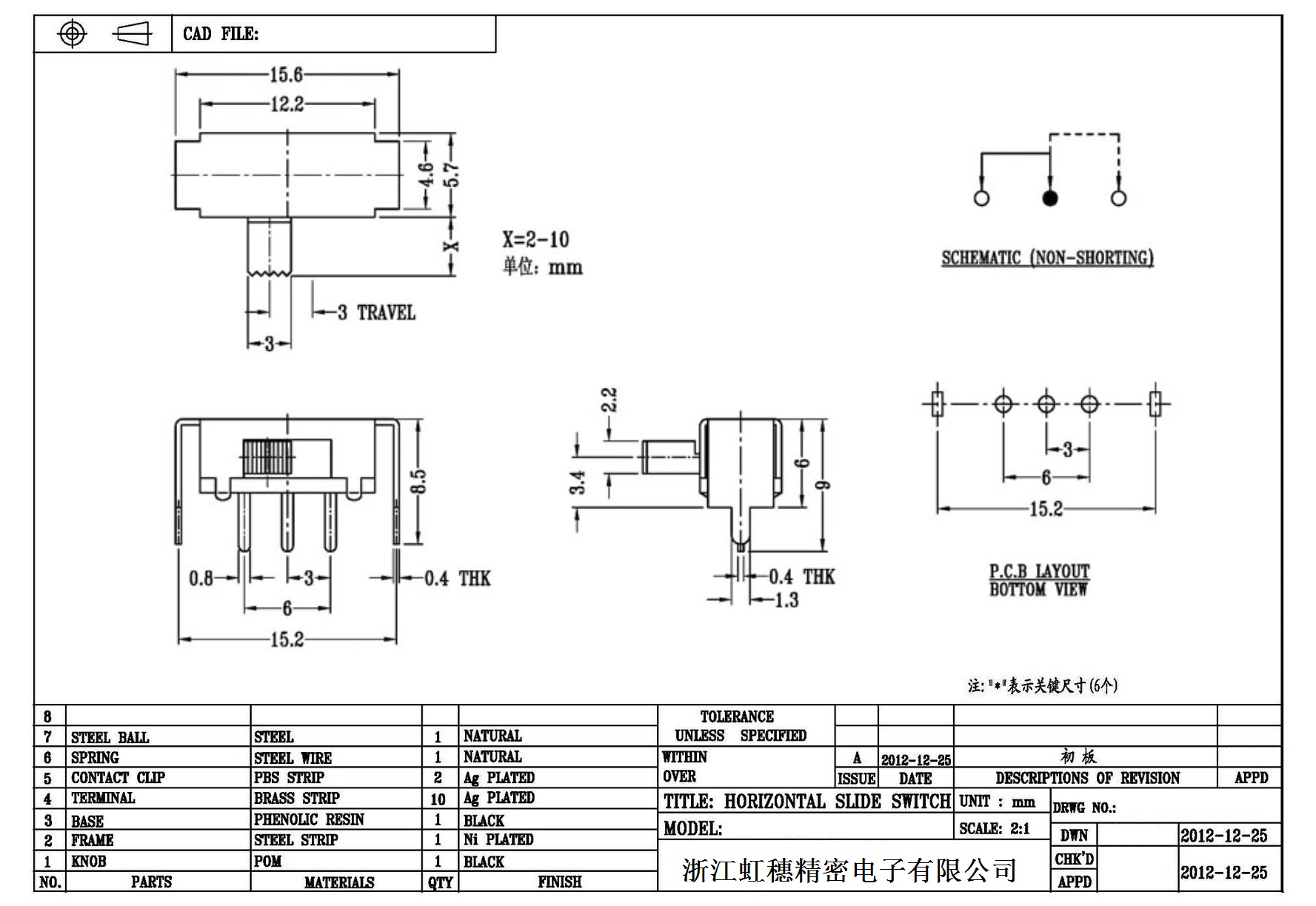 Horizontal toggle switch sidedial/horizontal slide switch technical indicators