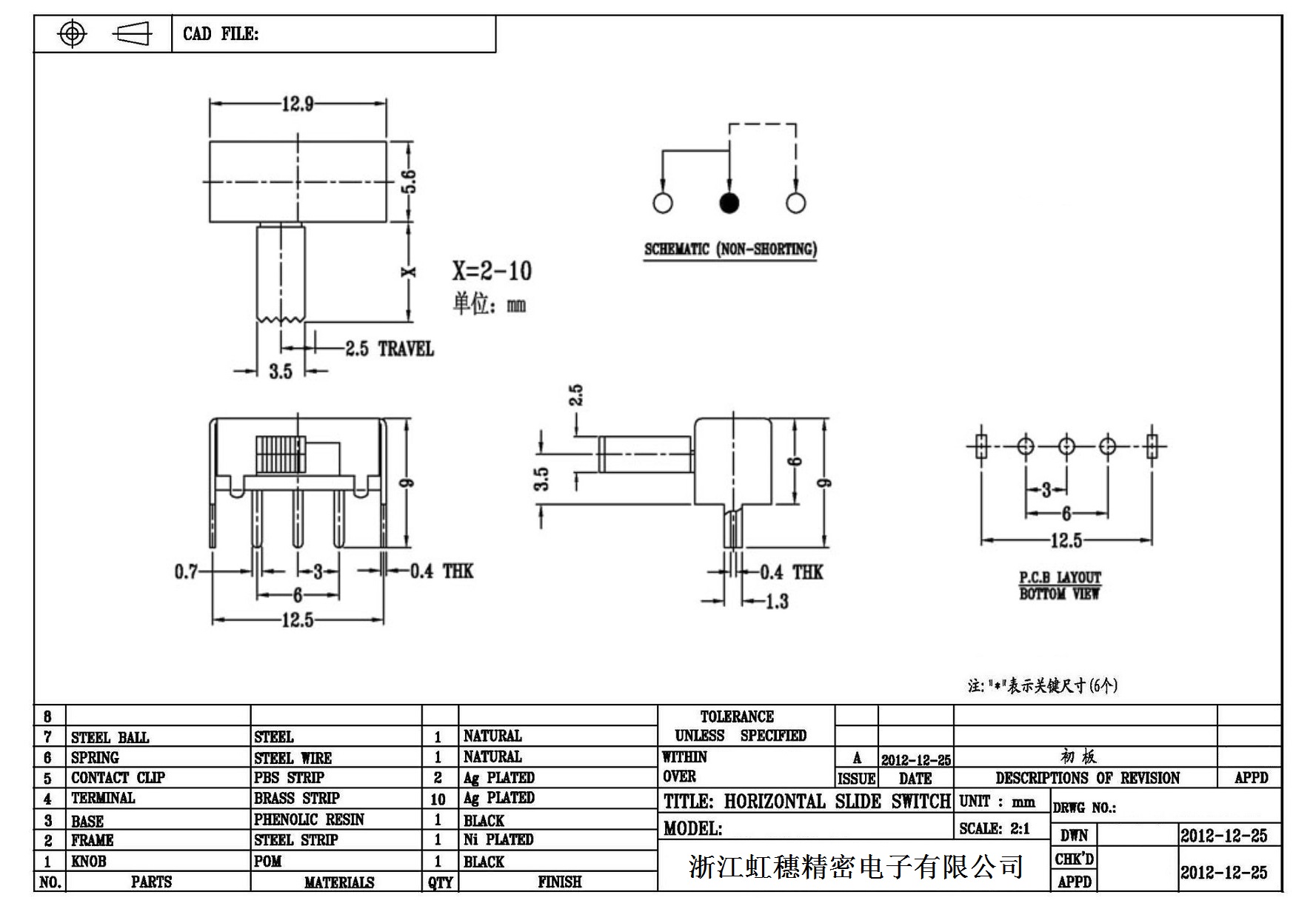 Horizontal toggle switch sidedial/horizontal slide switch technical indicators