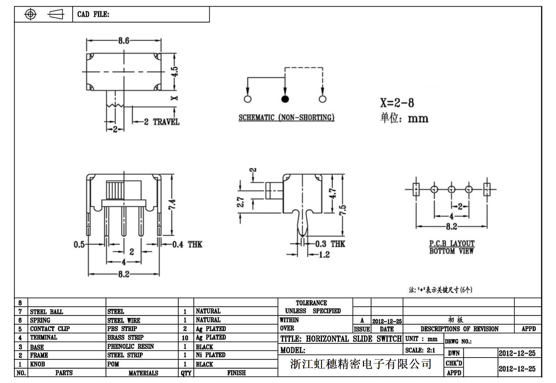 Horizontal toggle switch sidedial/horizontal slide switch technical indicators