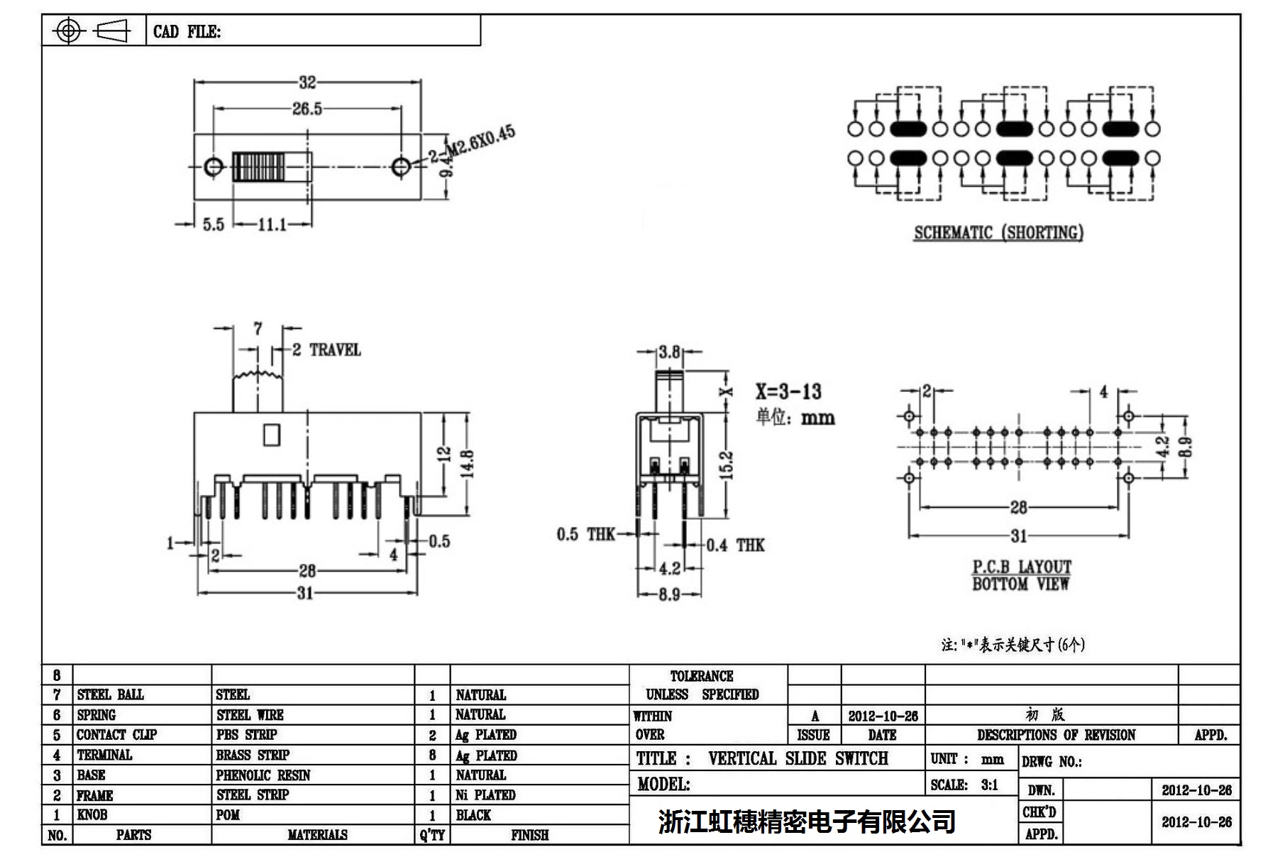 Verticaltoggle switch side dial/ Vertical slide switch technical indicators